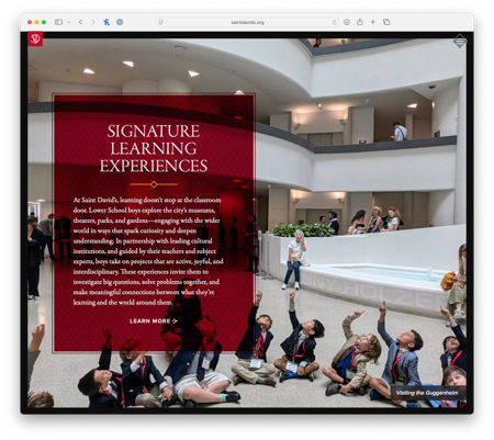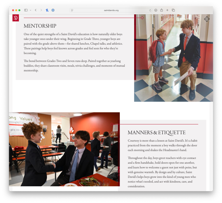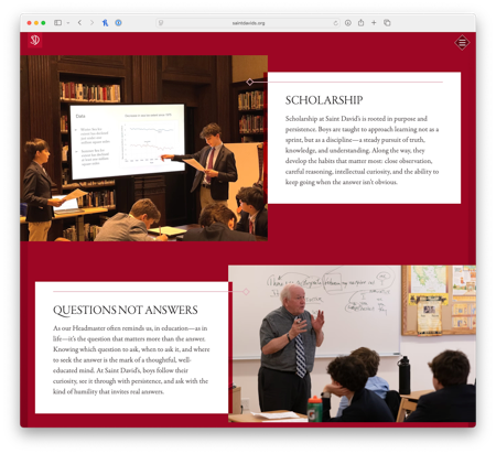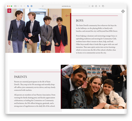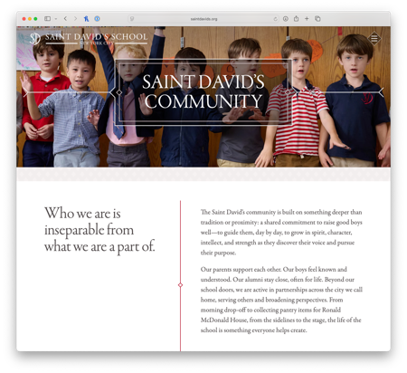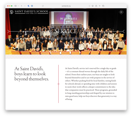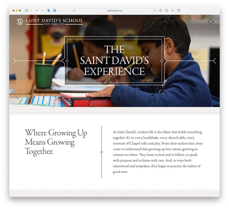 Tradition and transformation walk hand in hand at Saint David’s School, an Upper East Side NYC institution that takes boys seriously—and joyfully. For their entirely new site that debuted in September of 2025, I shaped web copy that balances intellect with warmth, showing how a faith-aware foundation can grow modern men of character, curiosity, and purpose.